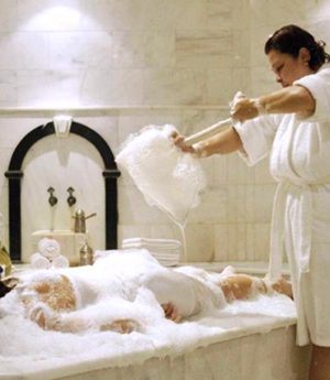 *Köpük masajı, aromatik yağlarla masaj ve özel lif-eldivenle masaj,